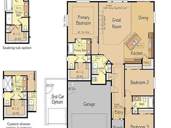 - Attached garage spaces: 3