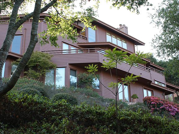 REDUCED! BEST VALUE! Bright, light contemporary w/panoramic City-Riviera-Ocean views from almost every room. 4BR,3.5BA; Office; Island kitchen w/exotic wood cabinets; Open Concept Living-Dining Rooms; 2 Family Rooms; 2 Bonus Rooms; 3-story Atrium; 2 Car Garage w/workshop; DUAL LIVING or HOME OFFICE - STUDIO; Walls of glass and decks/patios create a great indoor-outdoor living space. Pvt street.