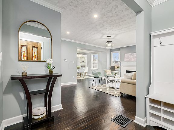 Beautifully remodeled home with every attention to detail. Lots of character with gorgeous vintage front door with stained glass, original hardwood floors, original built-in in dining room, and fireplace with built-in shelves on each side. The kitchen has brand new cabinets, granite countertop, tile backsplash, custom-built open shelves, and stainless steel appliances. Kitchen also has two pantry cabinets - one with a pull-out trash can. A half bath and door leading to the deck/backyard round out the first floor. Upstairs has a full bath and 3 bedrooms with brand new carpet and good-sized closets for a home of this age. Full privacy fence in the back, with a large gate that opens to a concrete slab for private parking. Agent-owned.
