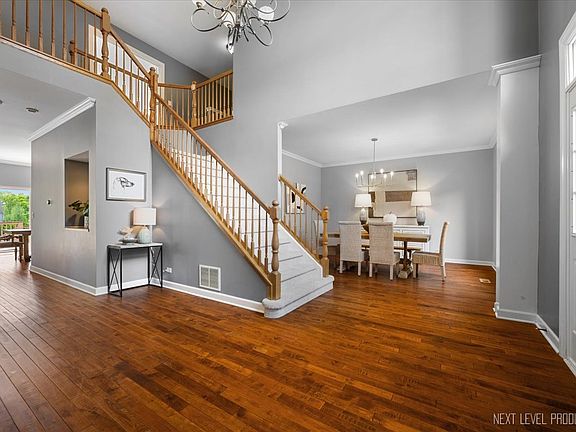 This amazing home sits within the sought-after Boulder Ridge community and boasts one of the best spots in 'The Greens' neighborhood. With 4+1 bedrooms and 4.5 baths, it offers everything you could want in terms of space and modern amenities. Upon entry, you're greeted by a two-story foyer that seamlessly flows through the main level, meticulously designed to include an open concept, creating a cozy atmosphere that extends to both the sun-drenched sitting room and the cozy family room, which features a fireplace and an additional staircase to the upper level. The chef's kitchen is equipped with stainless steel appliances, white cabinetry, quartz countertops, a designated eat-in area, a center island with seating, and a closet pantry. The main level is completed with a welcoming living room, a large dining room, a mudroom, a powder room, and true hardwood floors throughout, except for the travertine flooring in the beautiful living room/sitting room. Access to the expansive deck from the sunroom and kitchen creates an entertainer's dream. The master suite is a standout, featuring its own personal sitting room with a fireplace, creating an idyllic retreat. It also includes dual walk-in closets, a spa bath with a whirlpool tub, a separate shower, a wall of dual vanities, and a private commode. The remaining bedrooms include one with a private en suite, while the other two bedrooms share a Jack and Jill bathroom with dual vanities and a private commode. A finished lookout basement with ample recreational space, additional rooms, an exercise/bedroom, and an office add to the allure of this well-appointed property. Every detail and the custom floor plan have been thoughtfully designed to offer unparalleled comfort and style. Living in this gated community grants access to the newly improved (2023) Clubhouse, Pool, Tennis and Pickleball courts, and Golf Course, enhancing the lifestyle experience.***Not required*** Plus, it's conveniently located near Randall Road for shopping, dining, and entertainment. Crystal Lake (D47 & D155) Schools! New Carpeting- Entire Second Floor and Dual Staircases (2024), New Paint (2024), Professional Landscaping (2024), GE Profile Washer/Dryer (2023) Warranty, Water Softener (2021) Warranty, Water Heater (2023) Warranty, First Floor/Lower Level Furnace (2019) Transfer Warranty, Second Floor Furnace (2021), Transfer Warranty, True Hardwood Floors throughout main level and so much more!!