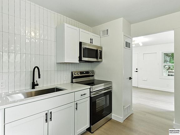 Welcome to your dream, fully renovated apartment in Field Club - within walking distance to the Blackstone District! This stunning mid-century modern space offers the perfect blend of style and comfort. Nestled in a beautiful, central, neighborhood with NO backyard neighbors and tree-lined views. Featuring 1 bedroom and 1 beautifully renovated bathroom with tile shower and soaker tub. Kitchen features quartz counters, new stainless steel appliances (Dishwasher, Microwave, Fridge & Oven), beautiful white shaker cabinets, & tile backsplash. Luxury vinyl plank flooring, new hardware, and updated lighting throughout. Close proximity to interstate access, Downtown, Midtown, Blackstone, UNMC, Creighton, restaurants, shopping, golf, and more! All units come with FREE off-street parking, private access, and on-site laundry hook-ups. NEW: Windows, roof, siding, full interior renovation, Appliances, & HVAC - meaning you will have lower utility bills! All utilities are separately metered.