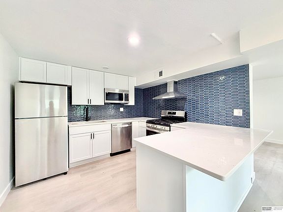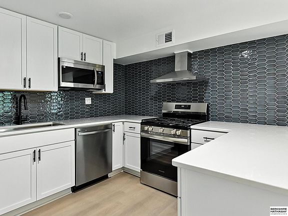 Welcome to your dream, fully renovated apartment in Field Club - within walking distance to the Blackstone District! This stunning mid-century modern space offers the perfect blend of style and comfort. Nestled in a beautiful, central, neighborhood with no backyard neighbors and tree-lined views. Featuring 2 bedrooms, One being a primary suite with en-suite bathroom. 2 beautifully renovated bathrooms with tile showers and soaker tub. Kitchen features quartz counters, new stainless steel appliances (Dishwasher, Microwave, Fridge & Oven), beautiful white shaker cabinets, & tile backsplash. Luxury vinyl plank flooring, new hardware and updated lighting throughout. Close proximity to interstate access, Downtown, Midtown, Blackstone, UNMC, Creighton, restaurants, shopping, golf, and more! All units come with FREE off-street parking, private access, and on-site laundry hook-ups. Enjoy being the first person to live in this beautifully renovated space!