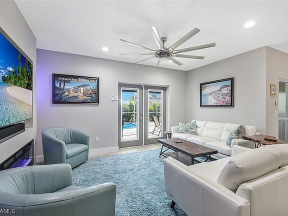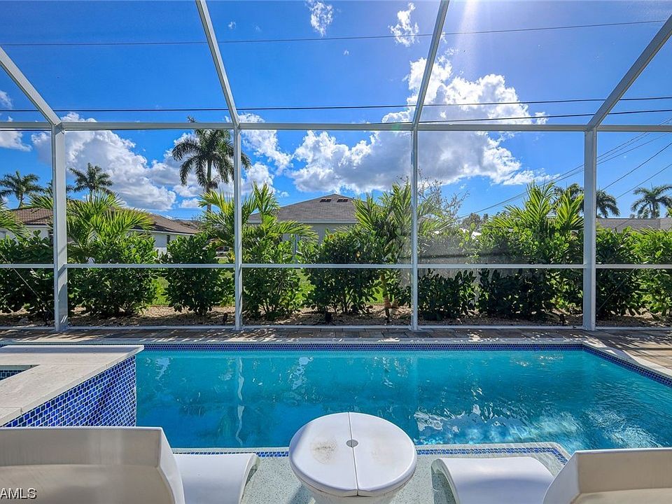 A MUST SEE - This home is ALL NEW including heated pool & spa & impact glass in 2022. Then Ian came to say hello. The home did not flood but had some serious roof damage, so it had a full remodel & you won’t find a better remodel. Unlimited wind speed HDZ shingles on the roof. All new LVT, wood plank flooring. New tiled showers, toilets, & vanities. The kitchen is amazing with a huge walk-in pantry & ton of extra cabinetry added, wine bar & every base cabinet has a drawer. New higher end appliances too including a French drawer refrigerator w/two ice makers, slide in range & washer & dryer. All wood closet shelving in every closet. New light fixtures & fans, recessed lights added plus electric fireplace. New plantation shutters in every window. Step out to the large SOUTH EXPOSURE lanai & you’ll find an all-new summer kitchen, tongue & groove ceiling, grill & industrial hood protected by a new Kevlar roll down. Landscape lighting adds ambiance. All this only 1 mile from Publix & 8 +/- restaurants, Walgreen, doctors, dentists & more. Less than 3 miles to all the fun at Cape Harbour. Furnishings negotiable, could be immediately for use as a vacation rental or great family home.