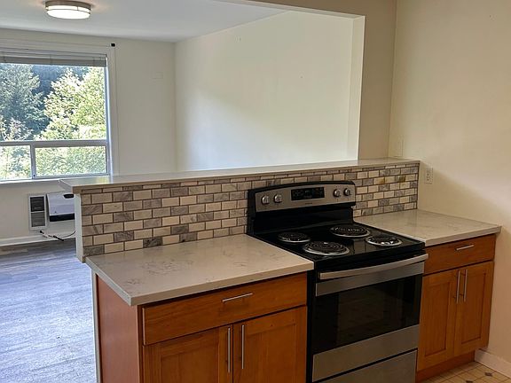 Quiet, peaceful and serene 2 bedroom one bath overlooking the trees of Marquam State Park. One hundred year old building remodeled in 2019. Kitchen has all stainless steel appliances and quartz countertops. Washer/Dryer in residence. Just a half mile from downtown yet feels like your out of the city and into the countryside. 12 month lease. Owner pays, water, sew, garbage, wifi (shared). No Pet rent ($250 additional deposit)