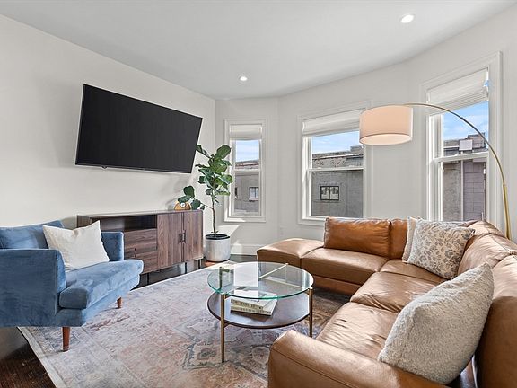 MOTIVATED SELLER (UP TO 10K TOWARDS A 2-1 BUYDOWN TO LOWER BUYERS INTEREST RATE) Experience modern living in this charming condo that beautifully blends original details with contemporary style. Located in East Boston, this spacious 3-bedroom, 1-bath unit features hardwood floors throughout, central A/C, high ceilings, and recessed lighting. As a bonus, it comes with a complimentary 65" TV and wait for it a murphy bed! The fully renovated kitchen is a chef's dream, equipped with top-tier stainless steel appliances, quartz countertops, an under-counter microwave, a stylish tiled backsplash, and a Vigo kitchen faucet. A sliding door floods the space with natural light and leads to your private outdoor deck, crafted with Ipe wood. Luxurious bathroom features a custom-tiled shower with glass doors, a 60" double sink floating vanity, imported Italian marble flooring, a Bluetooth speaker, and the convenience of in-unit laundry. storage In the basement. Close to Orient Heights MBTA