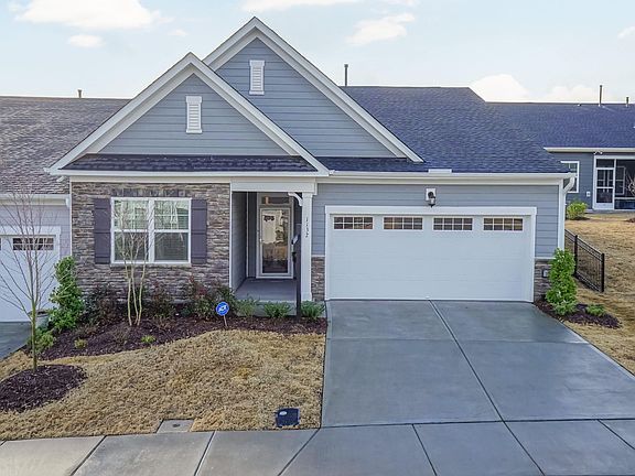 Gorgeous like NEW End Unit Ranch Style Home w/ 2 Car Garage - loaded w/ UPGRADES! Decked Out w/ Custom Rustic Hardwood Flooring, Crown Molding, Upgraded Fixtures throughout and More! OPEN Floor Plan w/ Great Natural Light & Storage w/ Massive Kitchen including Large Island w/ Bar Seating, Subway Tile Backsplash, Granite Countertops, and Top Shelf Appliances! Spacious MBR Ste w/ Tray Ceiling, Huge WIC, and Upgraded BA w/ Tile Floors, Tiled Shower w/ Seating, and Double Sink/Vanity! Relax on your Screened In EZ Breeze Sealed Patio w/ Quick Access to Extended Exterior Pato - Perfect for Grilling & Entertaining! HOA is includes Clubhouse, Pool, Cable, Roof and a Variety of Other things! Great Community Amenities including Pool, Playground, Clubhouse and Tennis Courts! Mins from Brier Creek, Hwy 70, and Tons of Shopping! Won't Last Long!