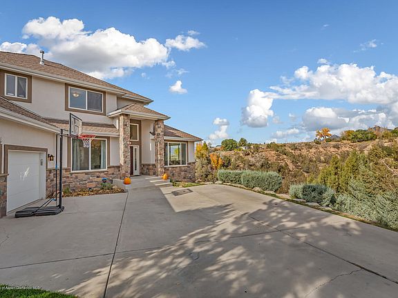 Beautiful custom home perched on the hill with 1.6 acres in Mesa View Estates - You can't miss the long, tree covered driveway bringing you to this iconic property. The views from every part of this 4 bedroom, 4 bathroom house will absolutely take your breath away! The main level has 2 family rooms, a formal dining room accompanied by a custom kitchen with all new high end stainless steel appliances.The master bathroom has dual vanities, a custom glass shower and corner soaking tub below two windows.The lower level has a walkout basement, living area and home gym setup.This is a truly exquisite property and must be seen in person!All exterior stucco is brand new.All kitchen appliances are brand new.Two 50 gallon water heaters are brand new.3 zone HVAC