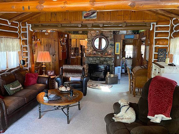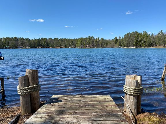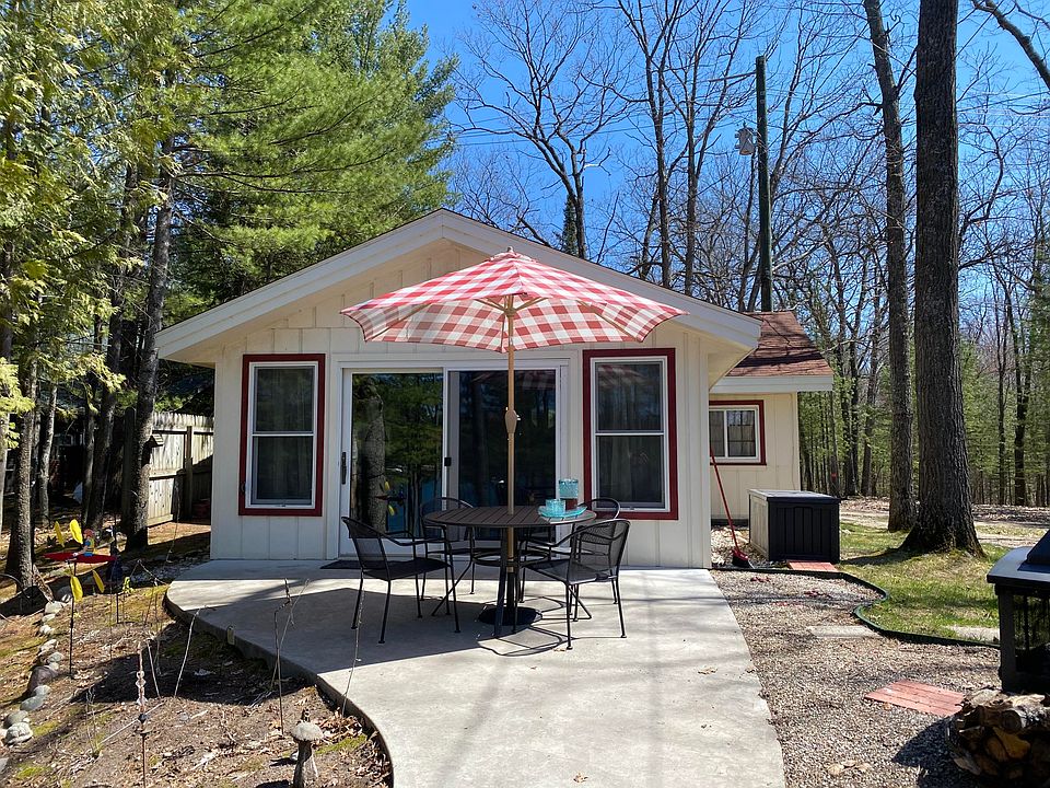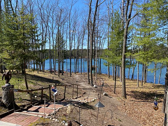 Looking for the perfect up-north lake cabin fully furnished and tastefully decorated? Here it is...!!! Turnkey cabin with 2 bedrooms and 1 1/2 baths and 63 feet of frontage on all-sports Little Wolf Lake with many updates. New expanded living room with door wall leading to cement patio overlooking nicely wooded lot and rustic pathway down to lake. New kitchen, full bath, fireplace insert, flooring and septic field, all in 2016. Natural Gas forced air furnace and new Generac generator. New 12x28 bunkhouse for extra sleeping quarters and storage, finished with T&G pine, completely furnished and decorated, power and a small electric heater. Plenty of storage for tools and a car in the 16x28 detached garage. 2 kayaks and small aluminum boat included with sale. PRICED TO SELL!!!