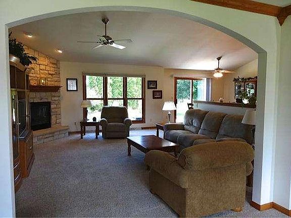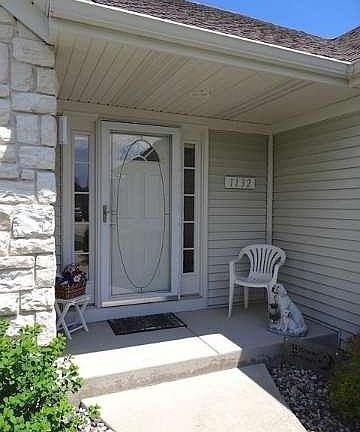 Impeccable! Nearly 1800 sq. ft. open-concept ranch built by Roberts Builders looks & feels as new as it did in '03! Exterior stone accent matches the stone on the Great Room's floor-ceiling fireplace. Split ranch. Master has 2 walk-in closets & full bath with dual sinks. Exotic Brazilian cherry floor in entry, hall, & kitchen; pine 6-panel doors throughout; neutral, like-new carpet; 1st floor laundry. Handsomely-landscaped berm in back offers privacy while on the patio. Underground sprinklers in yard.