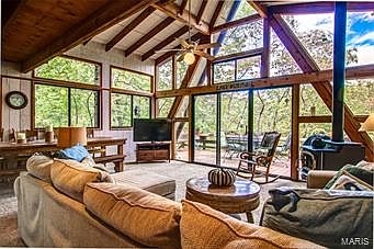 Beautiful lakefront timberline-style chalet nestled on 1.02 private acres of gorgeous hardwoods with level access to Teal Lake. This chalet boasts a recently expanded kitchen open to the large great room, which is wrapped in floor-to-ceiling windows with a wood burning stove - all opening to a fantastic wraparound deck. The master suite leads to a covered portion of the deck letting you enjoy the outdoors rain or shine. With two large bedrooms, an expanded sleeping loft and 2 full baths, there is plenty of room for family and friends. Just a couple steps off the deck and you could be fishing or swimming off the private lakeside dock or lighting a fire in the fire pit. On sewer with washer-dryer hookups, dishwasher, golf cart storage shed and so much more. Fabulous location just minutes to the beaches on Lake Aspen, close the restaurant, golf course and tennis courts.