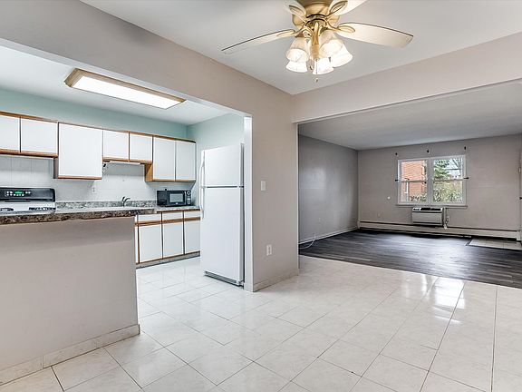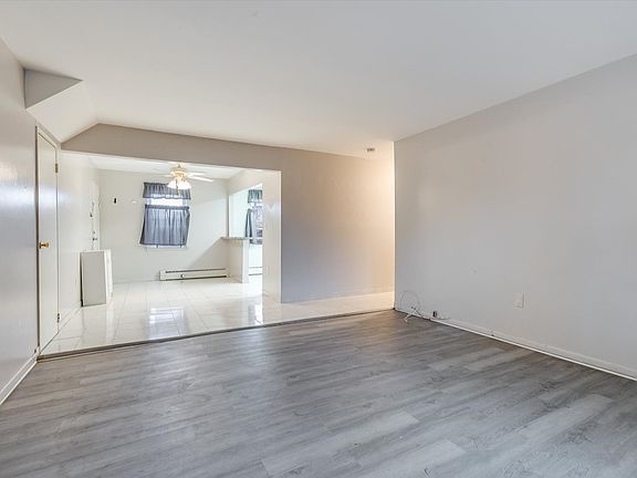Move in ready, spacious first floor condo with plenty to offer and close to all major highways. This unit features an open floor plan and includes a dining room, kitchen, living room with large storage closets, master bedroom with walk in closet, and full bathroom. Large windows provide plenty of natural light in the unit. Carpeting and tile all throughout. Beautifully maintained association pool and grounds make for great outdoor entertainment. Large parking lot with plenty of spots, no assigned spot. Laundry facilities in the complex. Great for commuters, right across the street from direct bus line to NYC! Owner pays for water. Renter responsible for gas and electric.