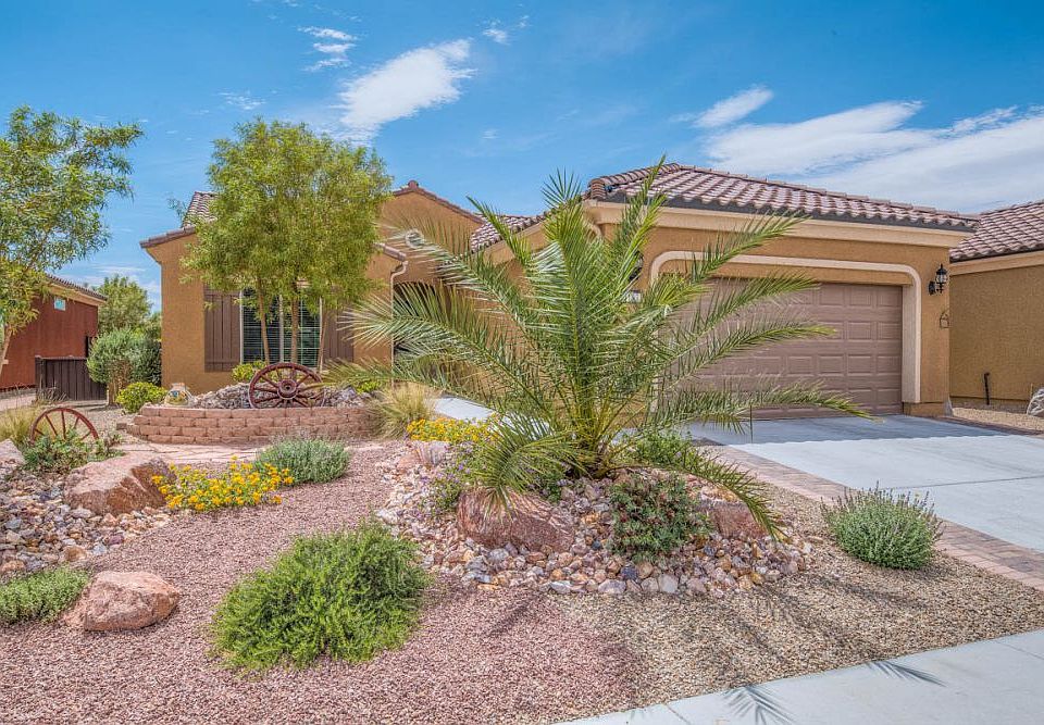 Location is everything! This exceptional 1,591 square foot home is located along the 9th fairway of the Conestoga Golf Course in Tannery Cove, a thriving active adult community in Sun City Mesquite. This popular Laurel model is surrounded by breathtaking natural beauty, gorgeous fairways and exquisite native landscaping. Enjoy panoramic views of the golf course, southern mountains and Flat Top Mesa. The patio has been extended and an elevated paver patio built to maximize views. From grape vines to a putting green, the front and back outdoor space is one of a kind. The interior on the home is open and large picture windows show case the view. Cherry cabinets, granite tops, custom back splash, large eating bar and costly appliances accent the kitchen. Other features include a walk-in tile shower, ceiling fans, surround sound, window coverings, new carpet, water softener and laundry cabinets. The garage has a much needed 4' extension and is lined with additional storage.