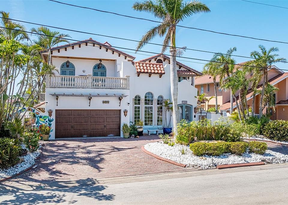Stunning one of a kind Mediterranean home. This is a rare chance to own this home. Previous owners had ownership 35 years, 22 years and this we believe only the 3rd owner of this special home since 2014. Due to the flooding of hurricane Helene it is now on the market. Cash and AS IS only. Magnificent custom home with major remodels over the years give it an effective age from Pinellas county property appraiser of 2002 (23 years). Recent tile roof installed in 2023. Exterior painted in the last couple of years too. Step inside the beautiful gated courtyards. The custom finishes begin there with tiles, wood, arched doors, beams, just to name a few. Generous home size at approx over 3800 square feet. This home with 4 bedrooms and 3 and a half baths and many extra flex rooms or living spaces. Architectural designed kitchen, large formal dining room, large living room with wood burning fireplace with direct waterviews,the home has tile and wood floors throughout and high ceilings.There are several large balconies and extended outdoor entertainment area with pool and heated spa.Upstairs there are 3 bedrooms as well as a game room/bar area and family room. Live the boaters lifestyle on deep water canal with large cradle lift as well as davits and additional boat parking just minutes to open fishing thru Johns Pass. The seller has prepared the home with a 4 ft flood cut and is completing the whole house electrical rewire prior to closing! Over 50k for rewire. It is truly a must see as the pictures do not it justice! Assumable flood policy available. Policy approx $5306.00 per year! What a great savings!
