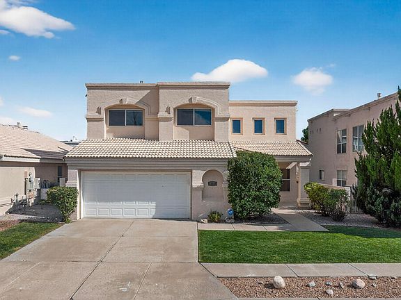Nestled in the quaint Willow Wood neighborhood of Albuquerque, this beautiful 4 bedroom 3 bath home is ready for move in! Located in an area close to popular shopping, desirable school districts, freeway access and a quick trip to our beautiful Sandia Mountains, you'll immediately fall in love with the location! The home itself is a beautifully functional floorplan with character and style throughout. Upon entry you will find ample space for living that seamlessly leads to the adorable kitchen. The home boasts a beatiful bakyard with mature vegetation and real grass to enjoy our 300+ days of sunshine every year. On the crisp Albuquerque nights, the gas log fireplace will keep you cozy warm. Bonuses include a balcony that offers outdoor access, and storage racks in the garage.