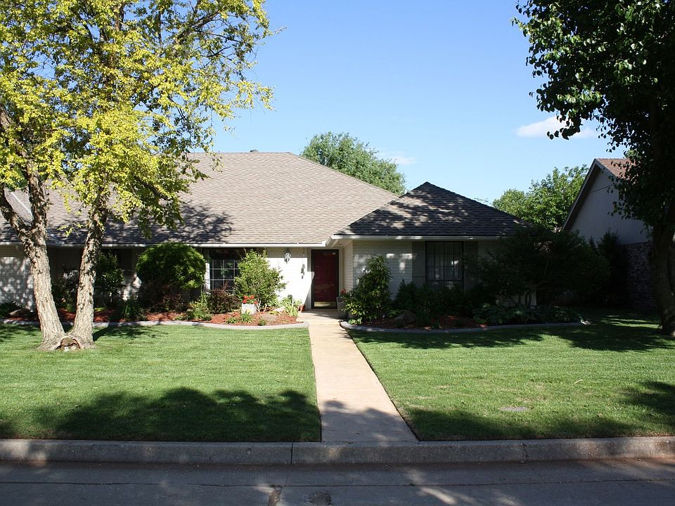 This is a Beautiful, Executive, Home in the Well Established Neighborhood in Blue Stem with Mature, Big Trees & Landscaping on .36 acre and an Oversized Covered Patio. This Home has 3022' total sq feet, 4 Beds, 3 Full Baths, & is a True Mother-in-Law Plan. It is on a Quiet street near the back of the subdivision. This gorgeous home has Two Fireplaces: one in the Large Living Area & one in the Master Suite. Lots of Storage, Built-Ins, & Large Walk-in Closets. BRAND NEW ROOF in 2019 & guttering, downspouts. Sprinkler System has New Control Box, Lines, Electrical, 2019. Home Alarm Security System. Zoned with 2 HVAC systems, with one replaced in 2019. Priced to Sell with Location, location, location near the Kilpatrick & Lake Hefner Parkway, Quail Springs, Sprouts, Crest, Warwick Library, Starbucks, so many restaurants, & more!