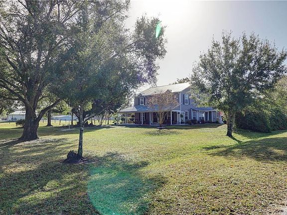 This is truly a one of a kind custom Built, 2 Story Southern Style home! Residing on a private 1 acre parcel with magazine like live oaks and full mature landscaping. The beautiful wrap around front porch stretches the entire length of house! This home boasts over 2300 sqft with gorgeous volume 24' ceilings on first floor, with 15' windows. Huge working handcrafted stone fireplace. The entire home is finished in lovely custom trim, chair rail, crown molding through out. Beautiful eat-in kitchen with Granite counter top, stone island, Stainless Steel appliances. New re-plumb 2015, New paint. 8 zone sprinkler system, in a park like setting! See Horses, nesting Sandbill Cranes, Ducks, wild life, all around the property! Home sits back from the road with long drive way, very private! The upstairs bathroom is beyond impressive with a real claw foot tub, and tasteful décor completing the Southern feel of the house. Invisible fence, many gates, paved walk ways. Enjoy relaxing on both the wrap around porch or the enormous custom deck built around two stunning oak trees. New water system with 10 year warranty. The heated pool is brand new! The location is superb, less than 5 mins to I-75.