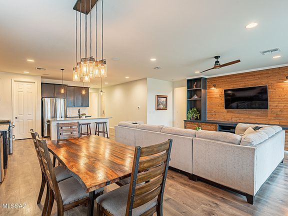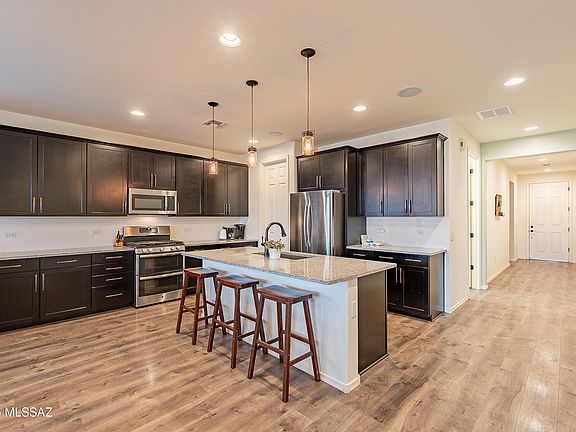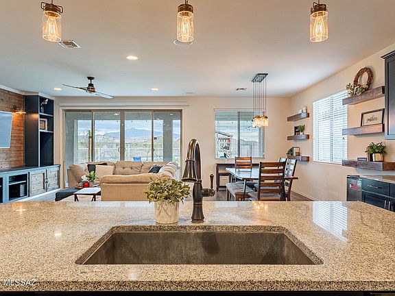 (buyer credit issues caused cancelation) Hard to beat cul de sac location! This 2017 Richmond American single-story home backs to the green space of common area with views of the Rincon Mountains. Meandering walking paths and sidewalks, oodles of shopping and dining spots within a couple miles and easy access to I-10 are trademarks of this great neighborhood.An extended east-facing covered patio with double glass door access and view fencing makes the most of indoor/outdoor living and the view. The home has 3 bedrooms plus a den/office with 2 full baths and is nestled on a dead-end street which equates to little traffic. A split bedroom floor plan features a spacious great room as the heart of the home. This open concept is excellent for entertaining with great indoor/outdoor flow through double glass(see more)sliding doors. Ample granite counter space and a large island with bar seating allows for multiple cooks and guests in the kitchen. A large walk-in pantry keeps kitchen items handy while hiding away any clutter.