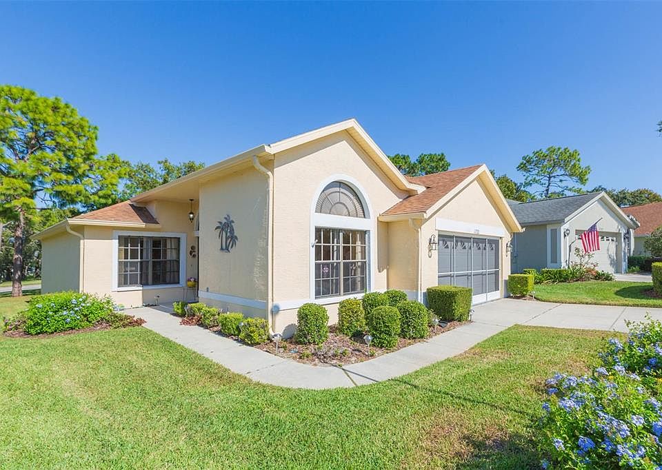 2.75% ASSUMABLE MORTGAGE: Welcome home to the beautifully maintained and ACTIVE 55+ Community of Wellington at Seven Oaks. This home is situated on a cul-de-sac and includes a large eat-in kitchen, separate dining room, indoor laundry room, and three bedrooms, of which one is located right off the living area and offers flexible functionality as a den, study, or family room. Cathedral ceilings contribute to the spaciousness of this home. The kitchen includes a large breakfast area plus a breakfast bar overlooking the living area. The primary bedroom suite includes double vanities, and a convenient walk-in shower with a built in seat. A glass slider leads from the living room out to the screened and covered lanai offering a comfortable outdoor spot to relax. The lanai is equipped with a portable A/C unit that stays with the home. The roof was replaced in 2015 and HVAC in 2016. Community amenities include a beautiful club house with a restaurant, Olympic-size pool and hot tub, fitness room, meeting and computer rooms, tennis, pickle ball and bocce ball courts, horse shoe rings, and a library. No need to leave the community if you are looking for something to do as the community has events planned out every month (see calendar of events in attachments). Members of the community also organize their own gatherings. Spaces in the community center can be rented out for such events. The community has everything you need within a 5-10 minute drive including a hospital, grocery store, and numerous restaurants. Nearby, enjoy numerous golf courses or local attractions including Weeki Wachee State Park with its world famous Mermaids, Pine Island beach area, fishing piers, numerous boat ramps and kayak launch areas or take a short drive to Homosassa Springs State Park.