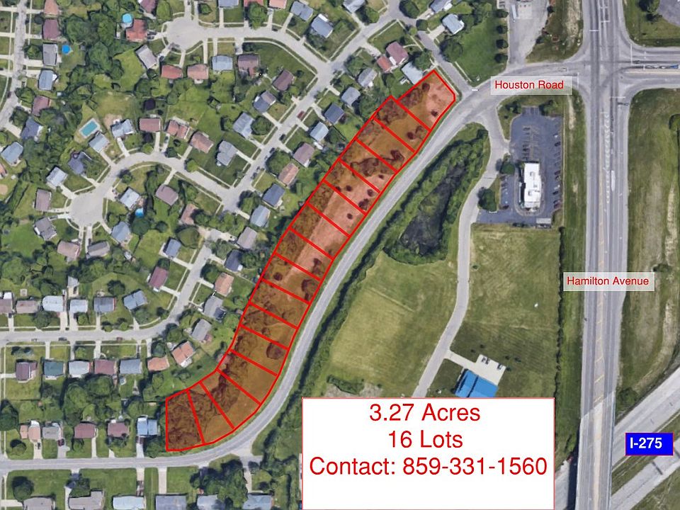 Rare residential land opportunity. Less than a minute from the interstate. Up to 16 single family lots, zoning also allows attached housing. Lots average .20 acres and are 70'x115' on average. High rental demand area for potential income producing property. Call: 859-331-1560