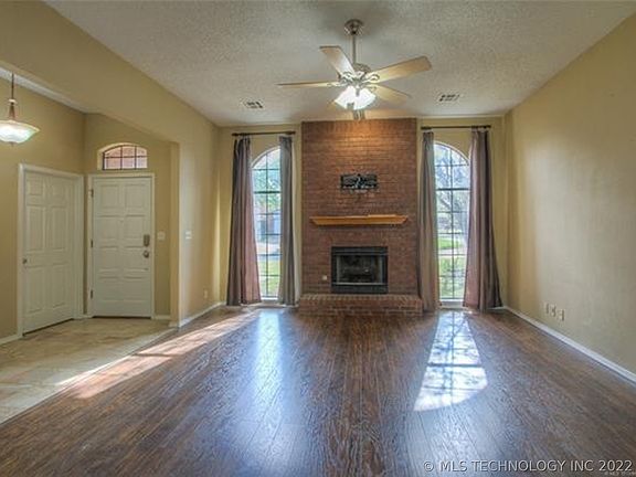 Perfect for that first time home buyer! New roof as of 4/22/ 22, full brick well maintained 3 bedroom, 2 bath in Bixby schools! Laminate flooring, brick fireplace, master suite with double vanity, separate tub and shower! Lots of storage, covered patio, and privacy fenced backyard!