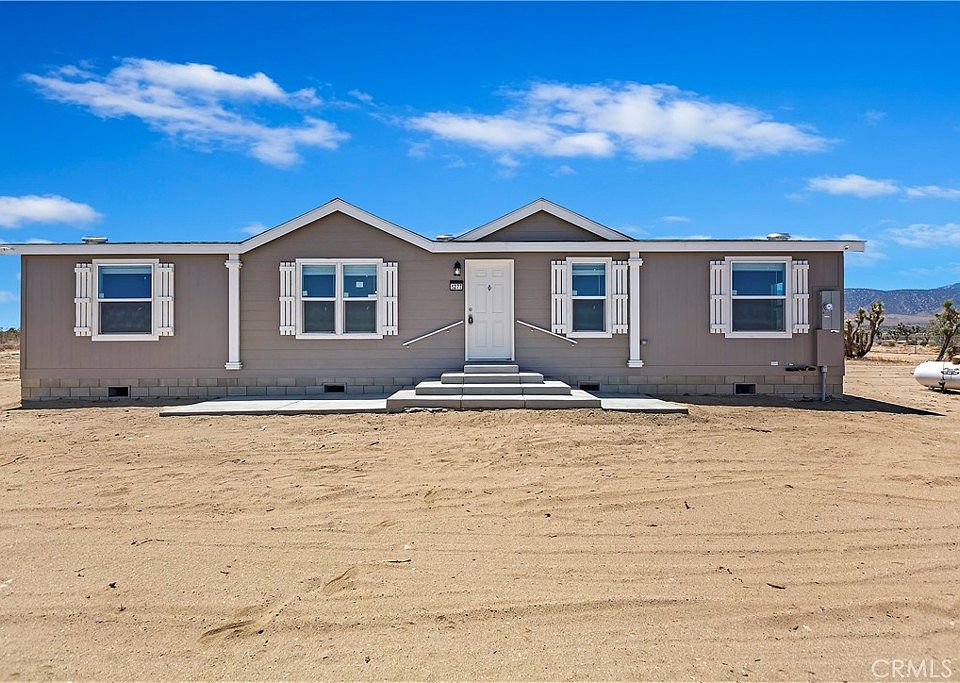 Nothing to do but bring your furniture, clothes and your imagination....** BRAND NEW 2023 Fleetwood Manufacture home on a permanent foundation that is approximately 1344 of living space that sits on approximately 4.72 acres that is zoned for horses and other farm animals. Farm house style single story with no interior steps, Open concept floor plan with modern touches, vaulted ceiling in family room with ceiling fan, kitchen with vinyl flooring that looks like plank flooring, separate dining area, Kitchen white cabinets, formica counters, tile backsplash, recessed lighting, ample amount of cabinets, dishwasher, and refrigerator. Dual pane low E windows with decorative interior wood valances, interior panel doors, laundry room with additional cabinets for storage, master bedroom with walk-in closet, master bathroom dual sinks, decorative backsplash, formica counters, and walk-in shower. Blank canvas with unlimited possibilities, RV parking/access, ample amount of space for your toys, trailers, farm animals or build your own garage, workshop, pool, spa, ADU, or horse barn. Affordable Southern California lifestyle living with low property taxes, No HOA, FHA and Va offers are welcomed.