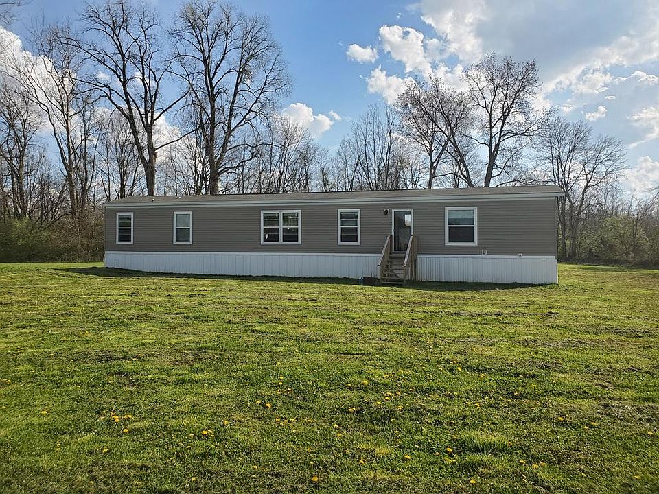 Very private setting on this 2022 mobile home. New pole-barn style garage. Property sets at the end of shared driveway across small creek. Taxes are on land only. Contingent on seller finding suitable housing.