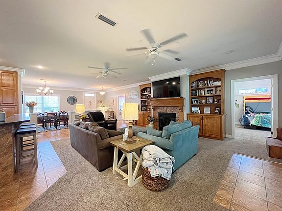 3 Bedroom 3.5 bathroom. Extra large garage (30x24) plus storage off garage (10x18). Front and back porch (back porch screened). New remote control fans on back and front porches (2 on each porch). 2 gas water heaters - 1 tankless and 1 50 gal. Gas logs in fireplace. Tile throughout house with some carpet installed on top of it. Air conditioner replaced in 2021. Brand new roof - 1 month old. Call for appointment today.