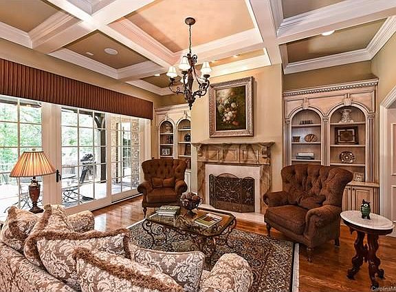 Luxury living in Ballantyne CC-Superior finishes, Marble, Hdwd, 14' coffered/tray/vaulted ceilings. Chef's kit-huge island, open to GR w/Stone FP & scrnd porch. Stunning DR, Exec study & 2nd office-exquisite built-ins/millwork. Main level MSTR w/spa bath/heated floors-opens to Terrace! 2nd Lvl-3 beds ensuite w/bonus/bed. Daylight LL w/Theatre, Billiards,Pub bar/2nd Kit, gameroom,wine cellar & Guest Suite. Abundant storage/wrkshop/2nd laundry Firepit & Outdoor Kit w/long-range golf course views!