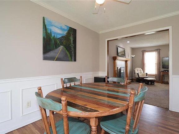 Charming 2-story on a corner lot in Staley High School area! Beautiful hardwood floors in the kitchen, breakfast nook and formal dining room! Spacious master suite features a walk-in closet, double vanity, whirlpool tub, separate shower and linen closet! Finished basement with family room, full bath and wet bar! Laundry on bedroom level. 3-tier deck overlooks fenced backyard! Sprinkler system! NEW carpet throughout! Newer Vinyl siding!