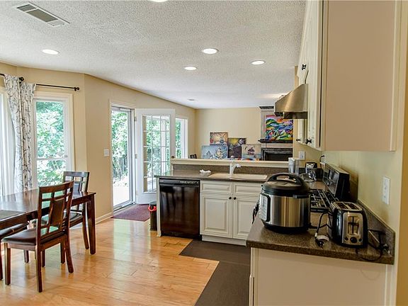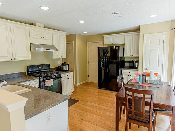 - Kitchen Features: Eat-in Kitchen, View to Family Room, Solid Surface Counters, Cabinets White, Country Kitchen