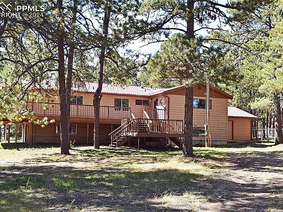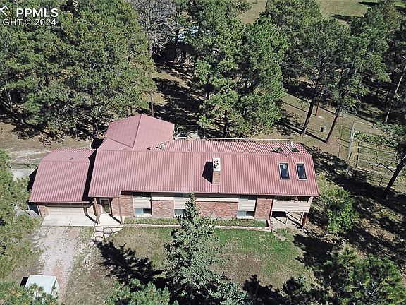 Rare opportunity to buy a home on .96 acres and an adjacent 5-acre lot with pond on the south end of Black Forest. Live in this house while you build your new home next door, then sell the older home, OR keep the existing home and sell the 5 acre lot OR just enjoy the entire property as it is. Four bedrooms, three baths, two-car attached garage, huge country kitchen and dining area, primary suite with adjacent sunroom with hot tub, two fireplaces, bonus room for crafts or shop, large office with separate outside entrance for your home-based business visitors, Academy District 20 schools and spacious deck for enjoying nature. 44x24 Detached 4-car garage/shop with wood stove, 25x36 7-stall barn with full loft and greenhouse with fenced garden beds to keep the deer out. Come for a look and see if you are home!