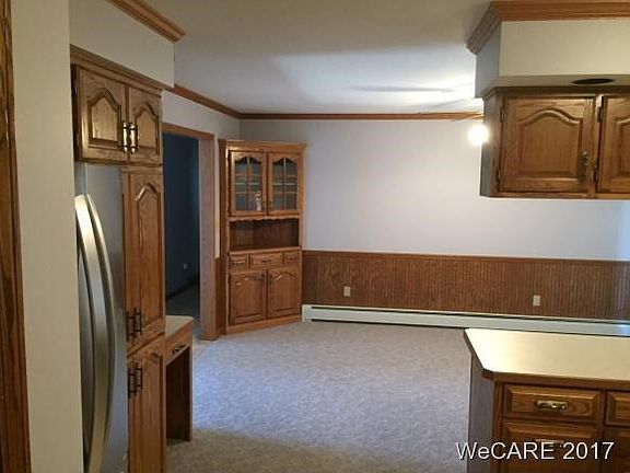 Located south of Columbus Grove gives the homeowner a country setting with a small town nearby. The 3 bed\2.5-bath brick ranch home with the attached 2+ car garage is situated on 5 acres and has a 3-acre yard. The insulated exterior walls are 6 inches thick to keep the cold out. Hot water heat provides a soft warm heat and central air conditioning keeps the house comfortable year-round. Plaster features enrich the elegance. The large living room is for entertaining. Custom oak kitchen cabinet and stainless appliances make gourmet chefs feel at home. Covered patio is for quiet evenings.