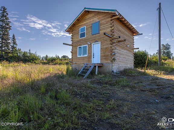 New Construction Log Cabin ready for you to complete the finishing touch. This 2 story cabin boasts Cook Inlet Mountain and Ocean Views! Easy maintained highway access. Electric onsite. Well drilled and needs connected, Septic tank in needs leach field, and cabin just needs finishing work completed. 7.53 acres of unrestricted land! build more cabins or make this your homestead!The land had been cleared many years ago and a large gravel pad was installed, but it is now over grown. There is an additional foundation set up for a second cabin and septic lines ran from that foundation to the current installed septic tank.