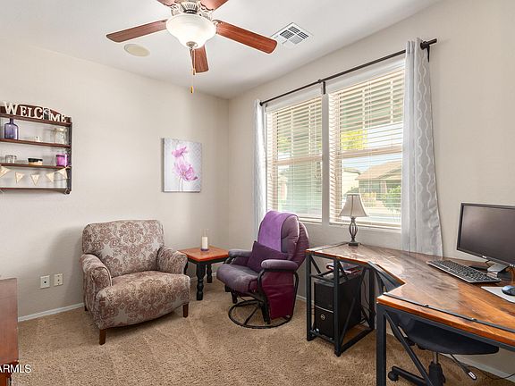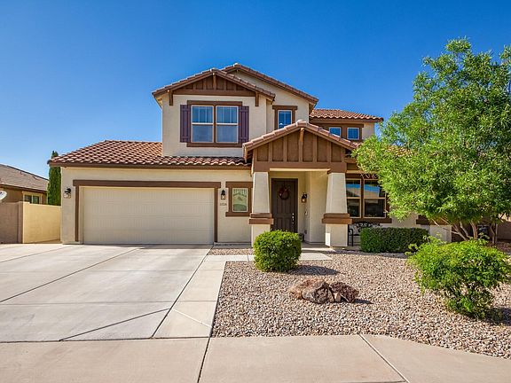 **Seller is offering a $5000 loan rate buy down/closing costs credit!** Move-in ready SPECTACULAR home loaded with extras! The spacious backyard is ready for entertaining with a custom outdoor kitchen that includes a wood burning PIZZA OVEN & smoker, natural gas grill & side burner. Roast marshmallows around the natural gas built-in firepit & relax under the pergola or covered patio. The kitchen features gorgeous granite, island with breakfast bar, stainless steel appliances including gas range/oven & a pantry. Beautiful custom wood bar top between the family & dining rooms! Additional pantry/storage & large storage closet. All bedrooms upstairs along with a spacious laundry room. Sliding barn doors divide the primary bedroom & bathroom. 2 hidden safes. RV gate with slab. Come see today! *Hidden jewelry safe *Hidden closet gun safe *Surround sound speakers in family room, living room & patio *3.5 car garage with extended length, attached hanging storage units, compressed air stations, 240 V, side access door to slab *New water heater 2022* Exterior paint November 2022 *Smart garage door opener *Smart water timers for sprinklers/drippers front & back *Smart thermostats with multi zones *Front door camera and security system with smoke & water detection *Pergola has French draining system *Patio string lights stay *SRP energy efficiency rating of 10 out of 10 *Close to 3 community parks *Family room next to kitchen is tile throughout - rug matching the carpet to stay with home *Great location close to the new sports complex, shopping, freeways & restaurants *Washer/dryer/refrigerator negotiable *Pool table with dining top & ping pong/table hockey top available on separate bill of sale