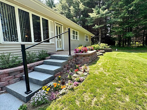 Nestled among the tall pines is where you will find this 4 bedroom, 3 bath ranch home. With 2 acres, this home has it all. Upon entering the paved driveway, you will see beautiful, easy-care landscaping, a cement area for a basketball court or an area for a pole building with no neighbors in sight. Once inside, the home is spacious with high ceilings. You will love the flowing floor plan, a family room with an abundance of natural light and wooded views, a living room, a separate extra-large main bedroom and 3 guest bedrooms. This home also features natural gas, forced air with A/C, a free-standing gas stove, and high-speed internet. Enjoy the peace and quiet on the private patio or enjoy family activities in the large back yard. Located only minutes from town on a paved county-maintained road is the place you will love to call home.