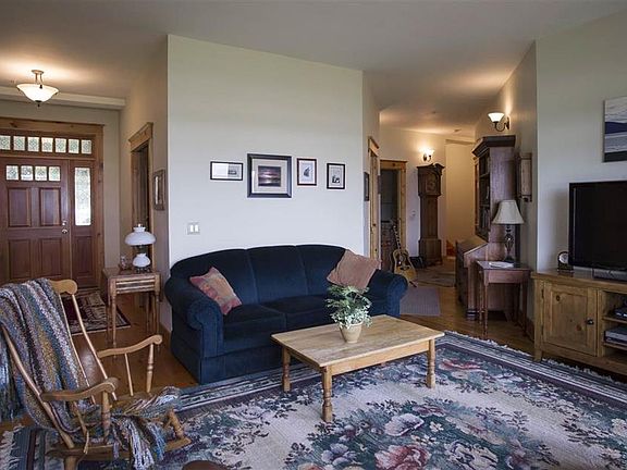 A rare, breathtaking, waterfront gem w/majestic views! This 4,005 sqft home offers 3BD/2.5BA, stone siding, copper roof, & beautiful wood garage doors. The kitchen has pine cabinets, tile floors, quartz counter tops, a dining area w/bay windows. The living room has a large masonry fireplace, & 2 sets of french doors lead to the patio where you can take in the views. The master has bay windows, walk in closet, beautiful tub, & sauna/steam shower. A large mud/laundry room leads to the 900sqft, heated garage.