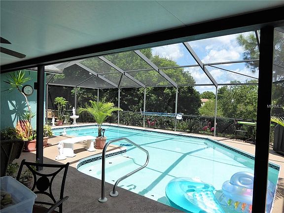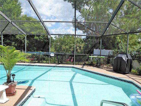 PRIVACY PREVAILS IN THIS 3 /2 /2 POOL HOME! This immaculate home resides on a .50 acre lot with no direct rear neighbors, just lots of trees & privacy. If you're looking for a huge beautiful pool then your search is over! The pool & covered lanai is great for those who like to entertain or just enjoy the beautiful surroundings. Features inside include a large eat in kitchen with a bay window where you can enjoy lush tropical oasis as your having your meals. Updated kitchen boasts rich granite counter tops, stainless steel appliances, undermount stainless sink, refreshed kitchen cabinets & ceramic tile floors. The great room features ceramic tile floors, 2 sets of sliding glass doors leading out to your lanai/pool, crown molding, ceiling fan & newer dining room chandelier. Master bedroom is very large & enjoys a walk in closet, neutral carpet, ceiling fan & several windows. The master bath has an updated vanity, sink, toilet & large shower. On the other side of the home you will find 2 more bedrooms which feature neutral carpet, large closets & ceiling fans. Second bath has updated sink & toilet as well. The entire back yard is fenced so no worry about pets or family members. You'll love the large 2 car garage (almost 500 sq ft) & seller is leaving the washer & dryer. Washer & hot water heater is newer too. Exterior was painted 4 yrs ago, pool pump 3 years new, garage screen doors newer, & ac compressor replaced in 2011. Draperies, pool sweep & 3 sheds in back do not stay with home. HURRY!