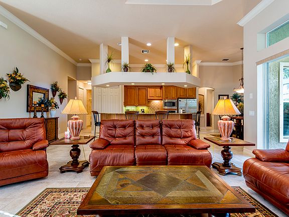 Gorgeous Custom built pool home in gated Golfing Community. Home is in impeccable condition and is being sold FULLY FURNISHED TURNKEY, just bring your toothbrush! Custom pool, waterfall and oversized large screened lanai area with fire pit, grill and patio furniture for entertaining or just relaxing and watching the sunset. Current owner added the following in Fall of 2012: irrigation well drilled/installed, plantation shutters in master bedroom, invisible dog fence, whole house water filtration system, high efficiency pool heater. Master bedroom is very large with incredible master bath complete with jetted tub and walk-thru shower. High end furniture throughout the home, stainless steel appliances, granite counter tops, porcelain tile, hardwoods and carpeting. Workshop in garage has a/c. Extra storage at back of house outside of pool area. Golf cart is included, owner put new batteries in 2013. This is a must see home, you won't be disappointed!!!