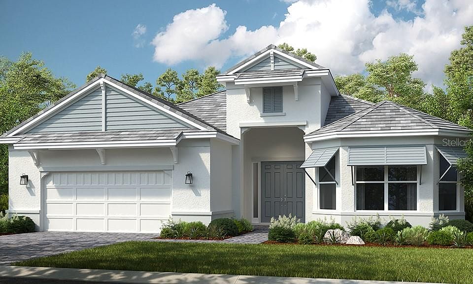 Under Construction. MLS#TB8355351 REPRESENTATIVE PHOTOS ADDED. New Construction ~ May Completion. Experience resort-style living in the gated community of Esplanade at Artisan Lakes! Whether you’re looking for active recreation or a place to unwind, you’ll find it here. Take a refreshing dip or lounge by the resort-style pool, enjoy a friendly game of pickleball, tennis, or bocce ball, or join a workout at the fitness center. Stroll along scenic walking trails, gather around the firepit, and take in the peaceful lake views. There’s even a café and a dog park for your furry friend! Esplanade at Artisan Lakes is designed to elevate everyday living—come explore this vibrant community today! The Pallazio residence unveils a central communal space where the gathering room, kitchen, and dining area harmoniously converge. The kitchen exudes elegance with its expansive island and convenient step-in pantry. An indulgent owner's suite awaits, comprising a refined bedroom, a lavishly appointed bath, and a commodious walk-in closet. Double doors gracefully unveil the owner's bath, offering dual sinks, a roomy shower, and a secluded water closet. Guests residing in the two guest bedrooms are treated to a sumptuous and inviting atmosphere an dflex room. Structural options added include: Gourmet kitchen, tray ceiling package, tandem garage, bay window at owner's s