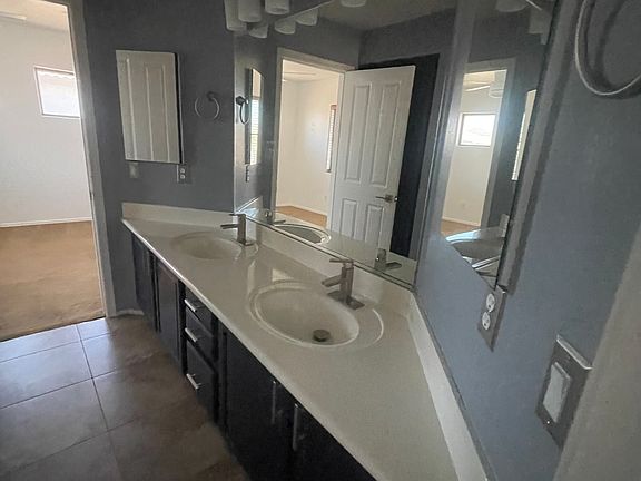 Nice friendly Eastmark-area neighborhood. Just a few minutes away from several schools and sports facilities for children. Large 1500 sq foot turf in back. Very little yard maintenance and we cover bi-annual weed spray treatments so you'll never have to worry about weeds. Rv gate, water softener, 3 car garage, ceiling shelving already installed with built in shelves in garage for lots of storage. Plenty of attic storage room too. Large back porch, French doors that open to the master bedroom. Lots of parking in front. Upgraded interior in some areas. Let me know if you have any questions. Thanks. Renter is responsible for all utilities. Landlord will cover HOA fees and yard Weed Spray. No pets.