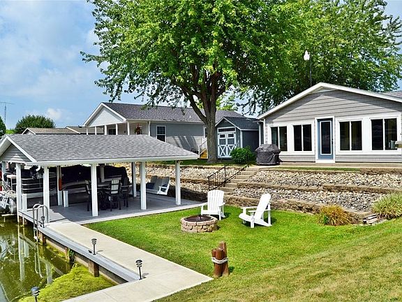 Channel-front property to enjoy the lake life! Beautiful home with updates throughout including custom kitchen (granite counters, farm sink, light fixtures, appliances and more), hardwood floors, interior/exterior doors, wood trim, paint, treated deck, sidewalk/patio, replaced roofs (house, garages & boat dock in 2014), shaker siding & a whole house generator (2015)! Home features 3 bedrooms, 2 full baths, living room, dining area plus a 25x10' all-seasons/family/rec room with view of the channel and backyard. Outdoor living space includes a double-covered boat slip (1 slip is decked-over for a covered entertainment area), open patio, new shed for storage and a nice yard. There is a one-car attached garage with a carport plus a two car detached garage too! Located at the end of the channel and a boat ride to open water! Seller will provide a one-year home warranty to the buyer at closing. Call today for your appointment to see this gorgeous home at Indian Lake!