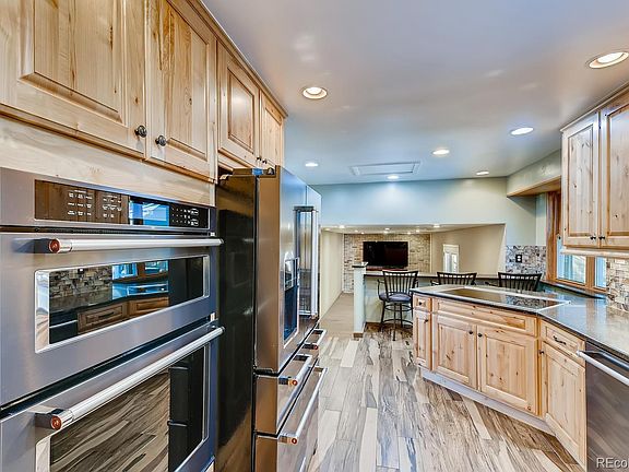 Wow! Get all of the bells and whistles in this well maintained oasis in the desirable Woodglen neighborhood. The kitchen remodel includes top quality cabinets, appliances and quartz counters. The built in breakfast bar has a great view of the refreshing above ground, heated pool and beautiful surrounding deck. But wait, it gets even better! The bathrooms throughout the home have all been updated with granite counters and porcelain tile. The Sellers are leaving the bar stools, Vivint Security System (fully paid for) electric fireplace console, 65" TV inside, mounted TV on the porch, portable gas grill, shed full of pool tools, hoses and timers for auto lawn watering. You will love the location walking distance to Margaret W Carpenter Recreation center, Thornton Recreation Center Fields, and Cherry Park.