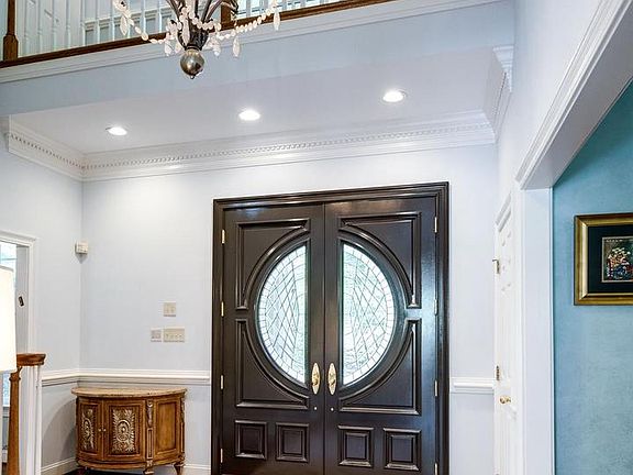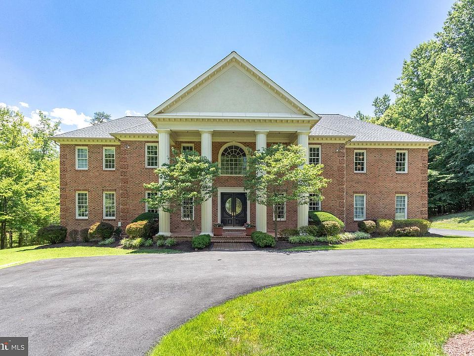 PRESENCE, PARADISE AND PRIVACY! Stately brick colonial mansion nestled on a beautiful 5 acre setting. Stunning first impression! Neoclassical detail throughout. Porch portico with 4 giant fluted columns rising into the sky. The exterior is PERFECT for time at home with a huge deck overlooking the RESORT STYLE POOL, complete with a waterfall cascading into the pool from the spa on the vista terrace. Double wide front doors with beveled glass open to a grand foyer with an arch window and curved hardwood staircase. Inside is luxurious with room after room of comfort. High ceilings. Dentil molding. Formal living room & dining room, conservatory/library, light-filled family room with fireplace & a Chef's Caliber kitchen with huge island. **LOTS OF UPGRADES. NEW ROOF (50 yr warranty), NEW CARPET, REFIN HARDWOOD FLOORS, FRESHLY PAINTED INTERIOR & EXTERIOR, NEW WASHER/DRYER/DISHWASHER IN 2020. PLUS MUCH MORE!** The upper level features an apartment sized master suite with 3 walk-in closets & ultra bath with steam shower and large air-jetted chromotherapy tub, plus 4 big bedrooms with closets galore! One flight below is a large screen theater with stadium seating, a full bath, a huge club room with a fireplace and a wet bar. Plenty of space for exercise equipment and billiards/game tables: the lower level also has a large multipurpose private room useful for virtual meetings, online education or just to get away, plus there is a wall of closets, windows facing south and French doors opening to the patio by the pool. Like to walk, jog or bike? Get 10,000 steps without leaving home! Half mile of scenic private trails loop the property. Camp or picnic by your own creek. Giant playing field. Southern sun perfect for vegetable and herb gardening. Fresh air & so much more. ***PLEASE NOTE - DUE TO COVID19, PLEASE BE COURTEOUS & SAFE! PLEASE WEAR A MASK & TAKE OFF SHOES OR WEAR BOOTIES. PLEASE DO NO TOUCH ANYTHING & TURN ALL LIGHTS ON/OFF WITH GLOVES***