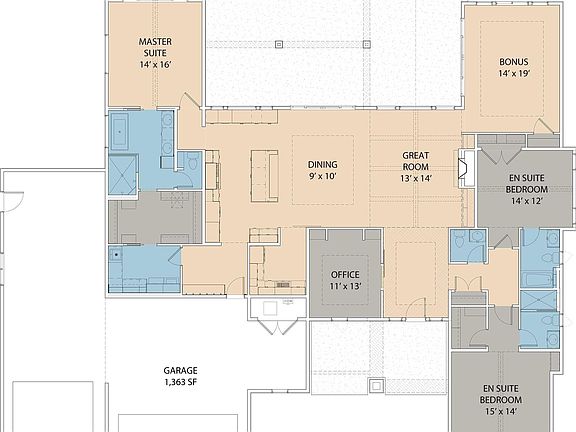 - Bath-Master, Bed-Master Main Level, Guest Room, Split Bedroom, Den/Office, Great Room, Rec/Bonus, Double Vanity, Central Vacuum Plumbed, Walk-In Closet(s), Pantry, Kitchen Island, Quartz Counters, Number of Baths Main Level: 3, Bonus Room Size: 14x19, Bonus Room Level: Main
