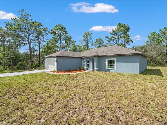 Welcome to this stunning brand-new 4 bedroom, 2 bath, 2 car garage home perfectly situated on a spacious .59-acre lot in one of the area's most sought-after neighborhoods. Designed with comfort and style in mind, this home features open layout with a split bedroom plan, high ceilings, oversized bedrooms, and walk-in showers in both bathrooms. The chef's kitchen is a showstopper with white shaker cabinets, granite counters, stainless steel appliances, breakfast bar, and a pantry. A dedicated laundry room with a sink and matching shaker cabinets adds convenience and function. Throughout the home, you'll find beautiful ceramic tile flooring that blends durability with modern design. Enjoy seamless indoor-outdoor living with French doors leading to an oversized patio, perfect for entertaining or relaxing while overlooking your spacious backyard. All of this is just minutes from shopping, dining, the Gulf Coast, the Weeki Wachee River, and the Chassahowitzka Wildlife Management Area, offering endless opportunities for recreation and adventure. Don't miss the chance to own this move-in ready, beautifully appointed new construction home! Schedule your private tour today!