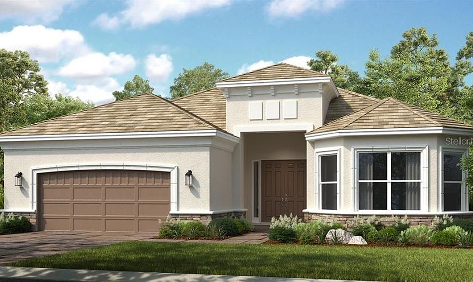 Under Construction. MLS#TB8316135 REPRESENTATIVE PHOTOS ADDED. December Completion! The Pallazio radiates warmth and hospitality, featuring a central common area that encompasses the great room, kitchen, and dining space, all with views of the covered lanai. The generous primary suite, located at the rear of the home, includes a stylish bedroom, a well-designed bathroom, and a spacious walk-in closet. Elegant double doors connect the bedroom to the primary bath, which offers dual sinks, a large shower, and a private water closet. The home also includes three additional bedrooms and two full bathrooms. Structural options added include: tandem garage, gourmet kitchen, additional bed, study, covered extended lanai, and outdoor kitchen rough-in.