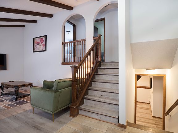 One level down, you'll find a family room with a fireplace, the 4th bedroom and remodeled 3/4 bath. One more level down is the 5th bedroom and the laundry/utility room.