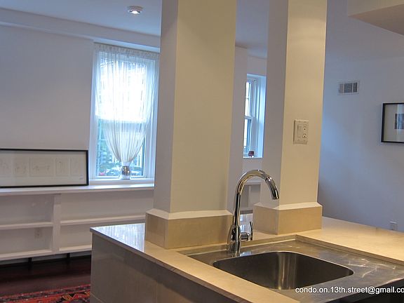 This is a spacious, well-lit corner unit in the classic Bartley building on the corner of 13th and M St NW. The kitchen and living room are open, with big west-facing windows and built-in bookshelves. There is a bedroom and a large den/office on the northwest corner. About 800 sq ft total, but feels even bigger because it was originally a two bedroom unit. The rooms are separated by European-style double doors with paned windows. There is a new hardwood floor in the living room and office. The bathroom has custom cabinets and is accessible from the living room or the bedroom. The kitchen is modern, with stainless steel cabinets, marble countertops and a new dishwasher. There are laundry facilities on every floor, steps away from your front door. Two large closets. Tenant is responsible for internet and electricity, but newly-installed Nest thermostat keeps the Pepco bill low. The location is perfect for anyone working downtown. Walk or bike to anywhere on the mall. McPherson Square and the Chinatown/Penn Triangle area are a couple of blocks to the south; Logan Circle, 14th Street and U are to the north and and west. Walking distance to three Metro Stations: Dupont, Convention Center and McPherson Square. Cats and small dogs (up to 20 lbs) are OK. The apartment is freshly painted and available now. Non-refundable $35 application fee (for credit check through e-renter.com). Rent directly from the owner. Easy application process. Text 202 556 1965 to set up a viewing this week!