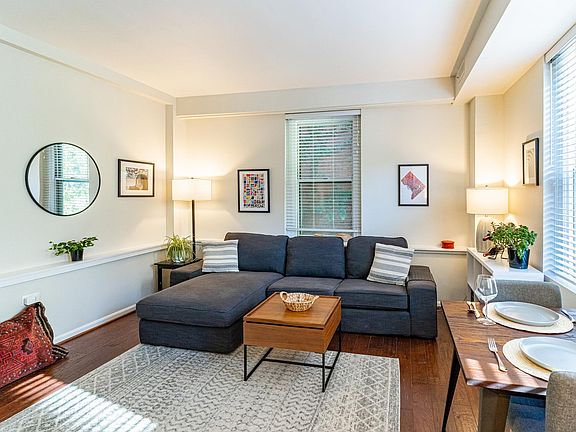 Bright and airy *fully furnished* one-bedroom apartment in the heart of Logan Circle. Corner unit with great light, high ceilings, and ample storage. Kitchen features updated appliances including a dishwasher and is well stocked with dishware, glassware, and cookware. Well-appointed living room with smart TV and electric fireplace also includes a lift-top coffee table that doubles as a desk for working from the comfort of your couch. Cheery bedroom has a full wall of closet space, and connects to a bathroom with a spacious bathtub/shower. Nest thermostat and Yale smart lock give you easy control from your smartphone. Just steps away from DC's best bars and restaurants, around the corner from Streets Market, and a short walk to Whole Foods, Trader Joe's, and the best of city-living. All 6 metro lines are within a 10-minute walk, giving it a perfect 100 transit score and 98 walk and bike scores. On-floor washer/dryer makes laundry a breeze. Make this historic, well-maintained building your home, and live in the middle of it all! Water and condo fees included in rent; cats and small dogs under 25lbs will be considered on a case-by-case basis for an additional deposit. No smoking of any kind or vaping permitted; minimum six-month lease. $40 application fee for background check.
