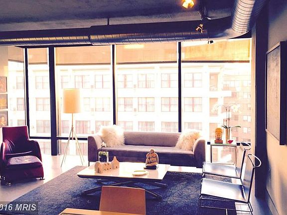 3 BLOCKS to METRO & GARAGE Parking! Modern 1BR/1BA+DEN LOFT condo in sought after 14th St/Thomas Circle loca. 846sqft w/open concept liv/din spaces & STUNNING WALL OF WINDOWS w/pano views of 14th St to Thomas Cir. Upgrades, custom closet, front-load W/D, desk/TV wall unit. Amenities incl desk attendant 8am-2am, ROOF DECK w/monument views, party room, pet-friendly. Walk to Whole Foods and shopping.